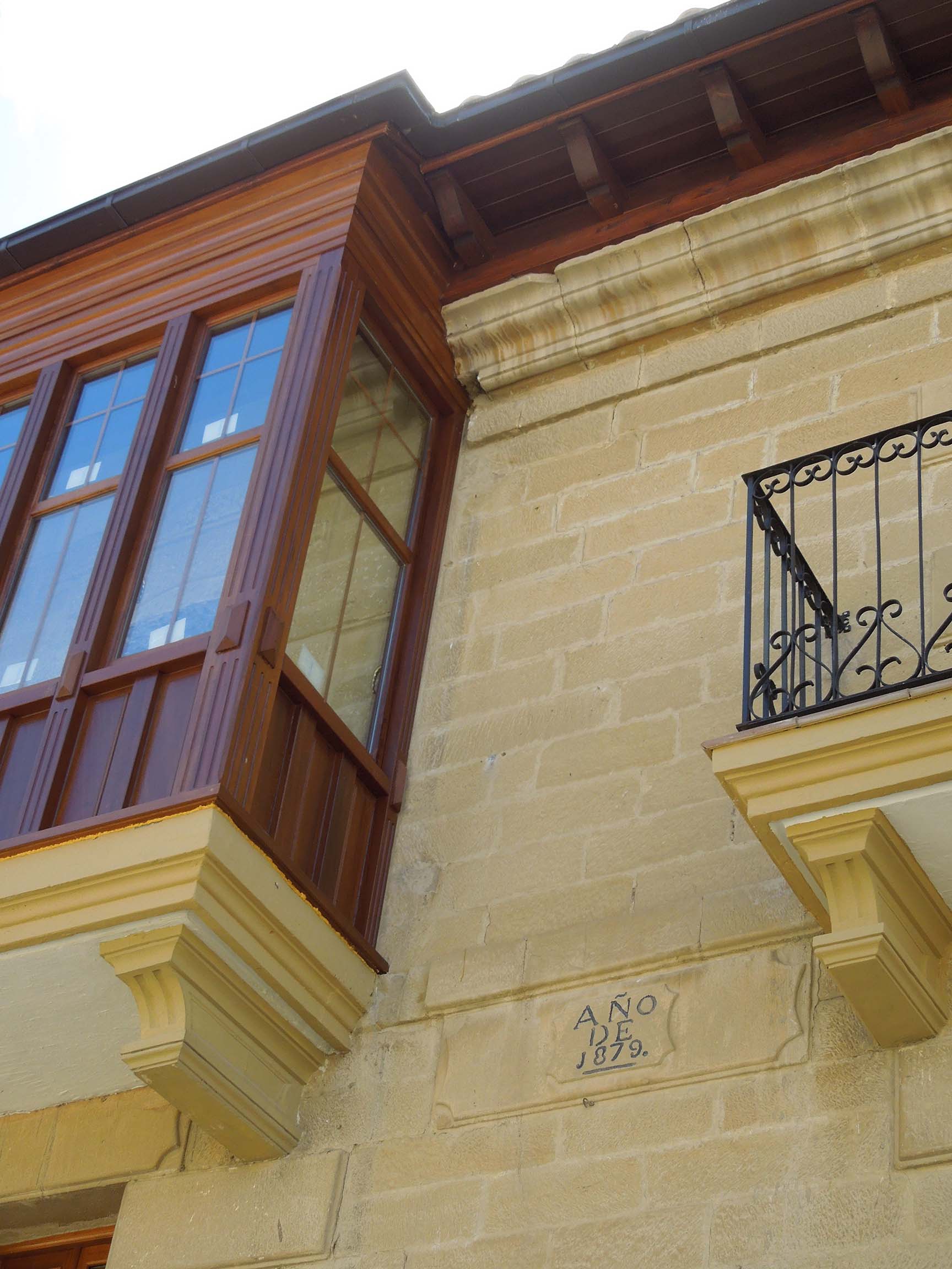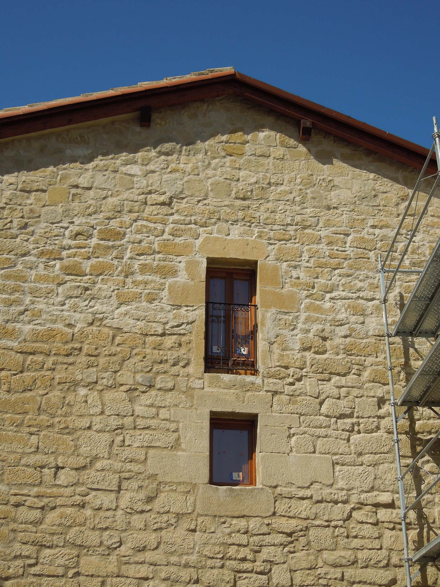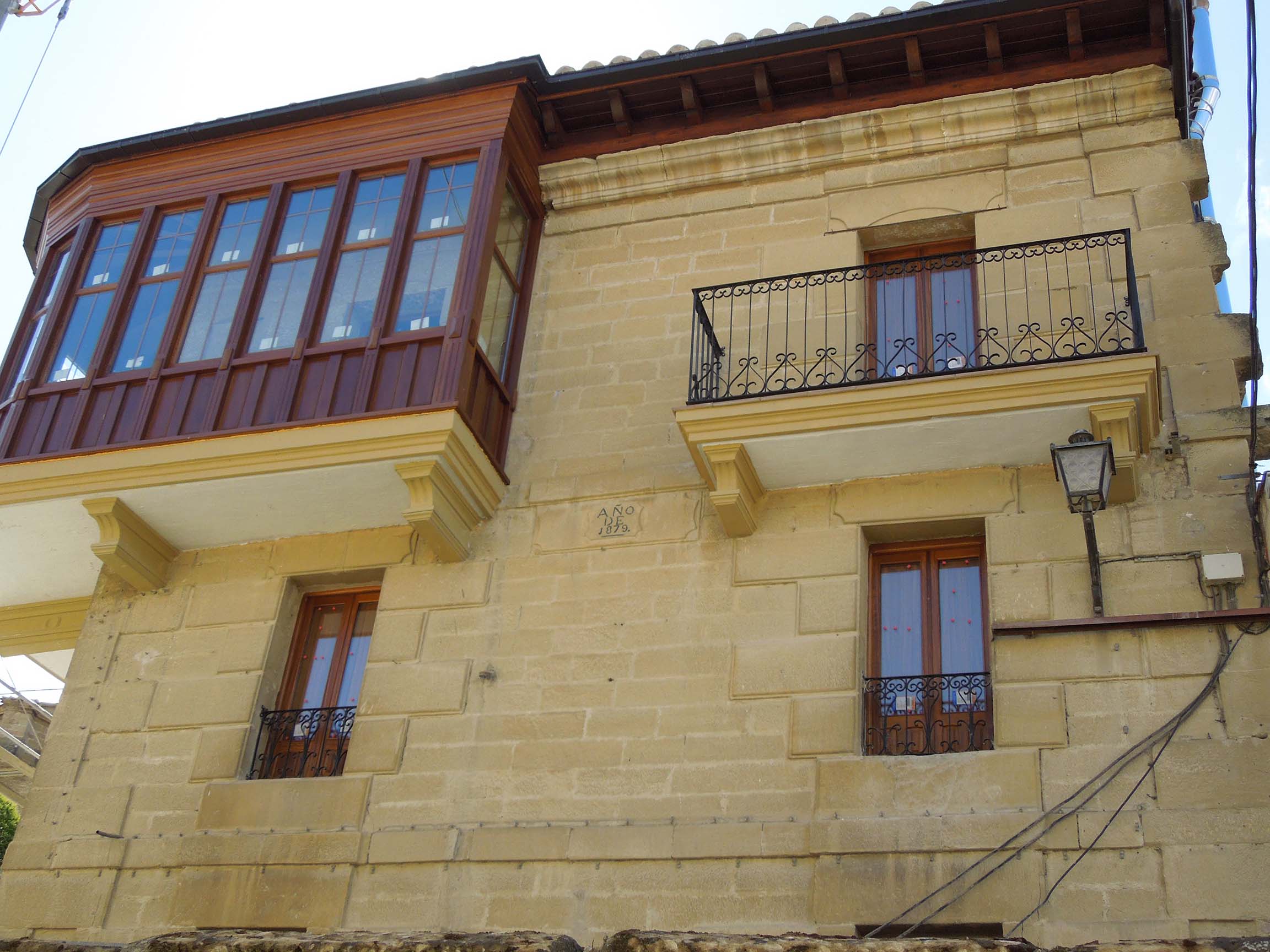 La edificación existente es singular, con la fachada principal realizada en sillería del lugar y el resto con mampostería, con las esquinas y elementos singulares de sillería. Además, tiene la particularidad de un mirador de madera volado en la esquina.