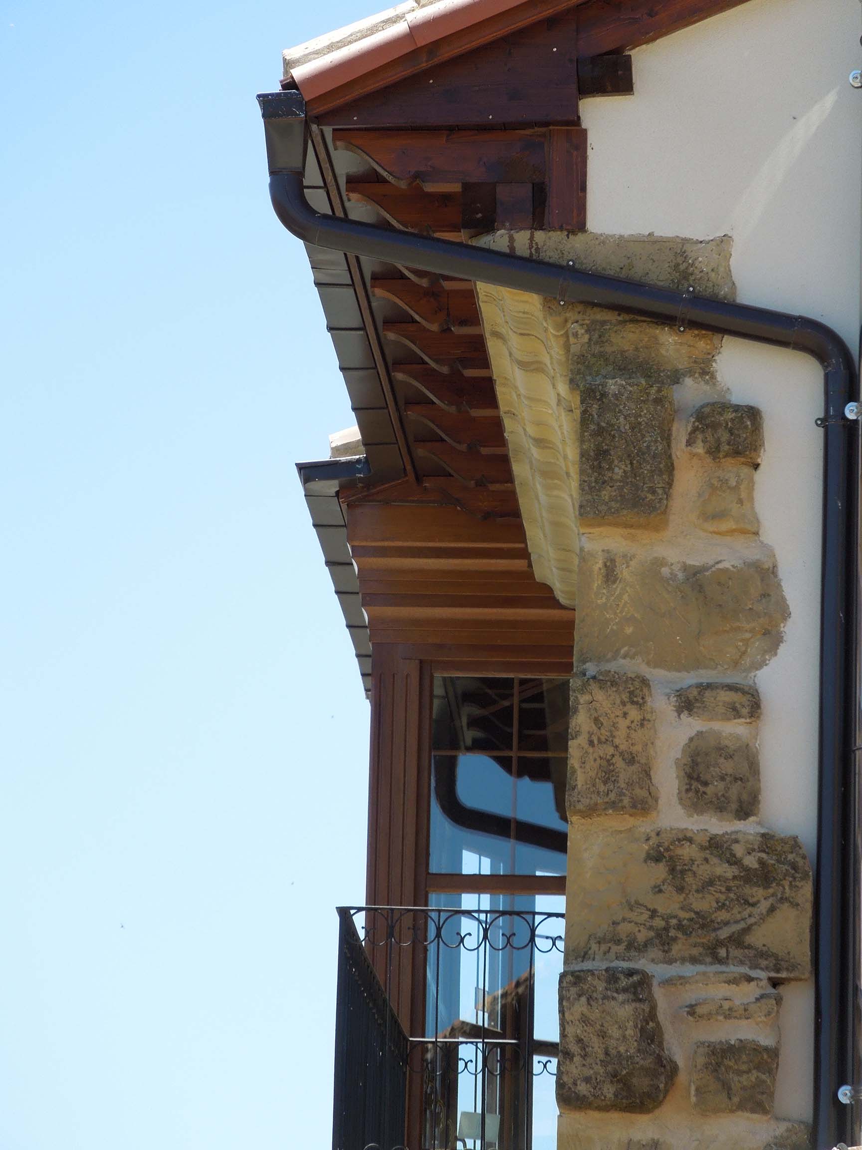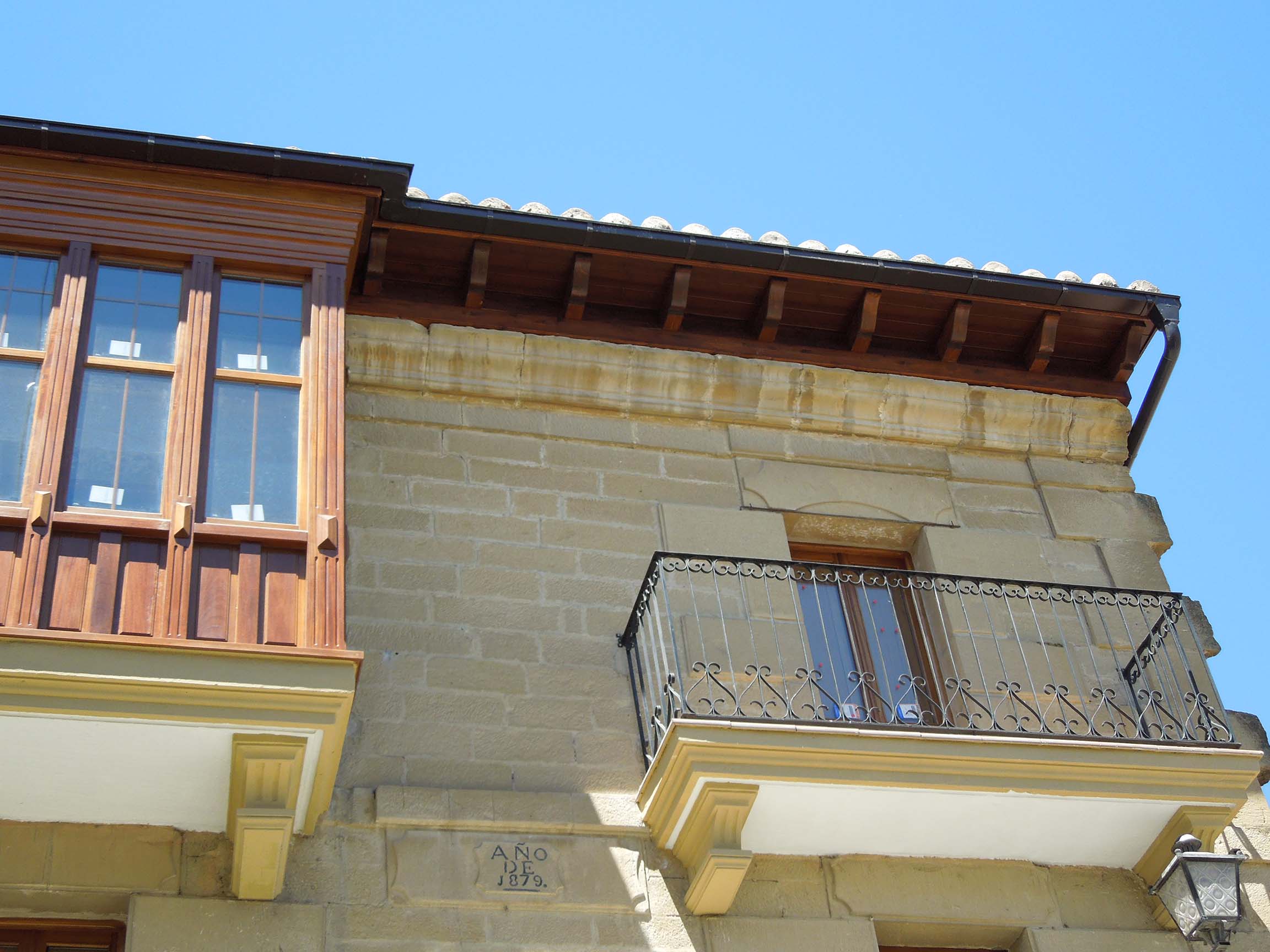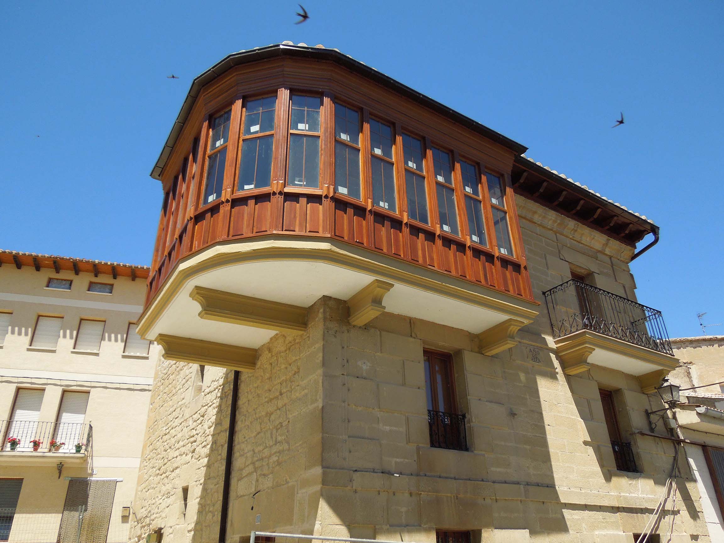 La edificación existente es singular, con la fachada principal realizada en sillería del lugar y el resto con mampostería, con las esquinas y elementos singulares de sillería. Además, tiene la particularidad de un mirador de madera volado en la esquina.