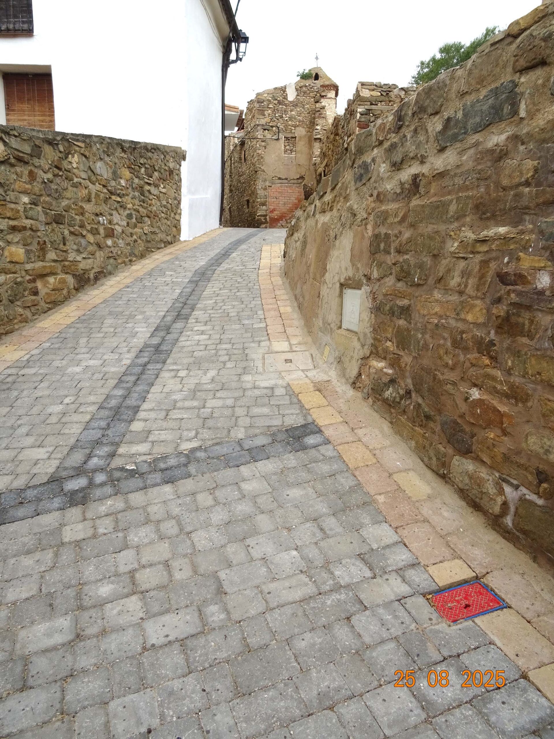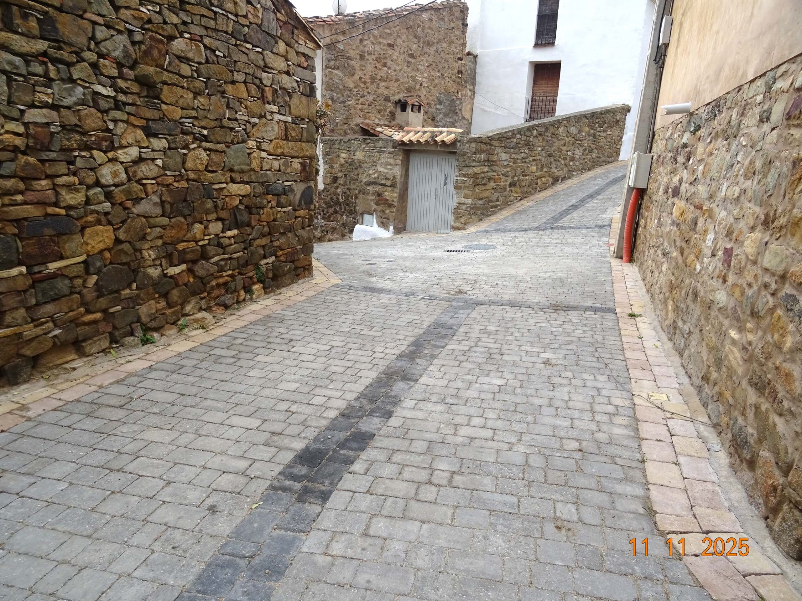 Esta reurbanización se ha ejecutado mediante solera de hormigón y acabado de adoquines de hormigón estratégicamente diseñados y colocados para que las calles estrechas existentes cuenten con unas aceras sin cambio de nivel y un eje que las va comunicando entre sí.